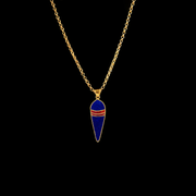 Delve into the elegance of our 21 Karat gold pendant, a mesmerizing fusion of craftsmanship and symbolism. The enamel reveals a captivating lotus flower, where serene blue reflects inner peace, passionate red embodies vitality and love, and ethereal light blue symbolizes spiritual awakening.