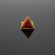 This beautiful ring features a triangle cabochon stone with gold ribbon wire border.
