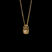 Experience understated elegance with Zaman's Whisper. A single, luminous pearl rests within a meticulously crafted filigree gold pendant, its delicate openwork design allowing the pearl's beauty to shine through.