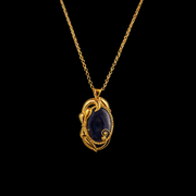 Pendant featuring a lapis lazuli stone set with handcrafted 21 karat gold that requires delicacy and intricate work. The stone is worn for protection releases stress and brings deep peace.
