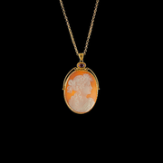 Embrace timeless elegance with the Classical Muse cameo pendant. This exquisite piece features a meticulously carved shell cameo, depicting a serene muse in the style of classical Greek or Roman art. Handcrafted in 21k gold, the ornate setting complements the delicate beauty of the cameo, creating a luxurious and refined statement piece.