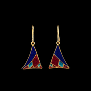 Embark on a soulful journey with these 21 Karat gold earrings, intricately adorned with enamel to unveil a lotus flower in enchanting hues. The serene blue embodies tranquility and inner peace, the passionate red signifies love and vitality, while the ethereal light blue evokes a sense of spiritual awakening.