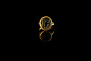 Roman designs were known for their simplicity and harmony. In this beautiful ring is featured Roman coin with gold ribbon wire border from inside and all around the bezel a hoop round in section expanding at the shoulders of the frame.